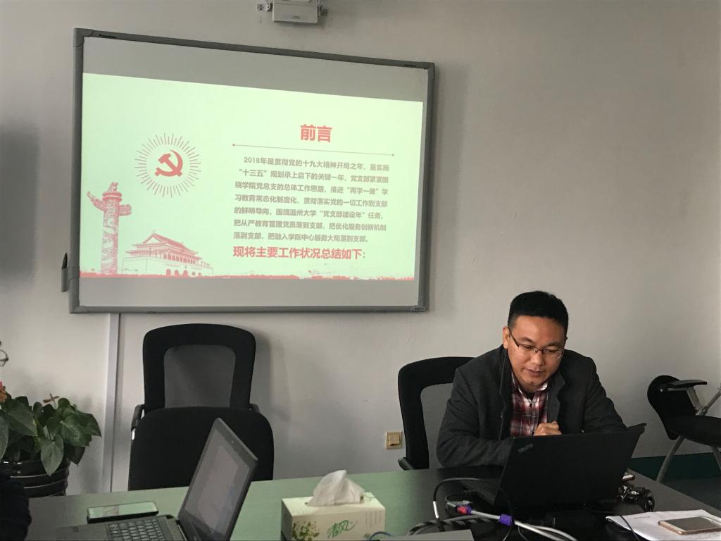2019年1月19日下午,开云体育 2018年度党支部书记年终工作总结述职会在6C401会议室召开,学院党总支成员及各支部书记参加了会议。会议由党总支书记周荣主持。
