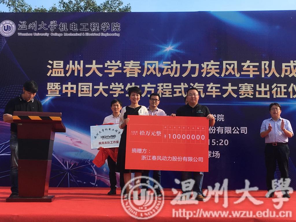 浙江春风动力股份有限公司总经理赖民杰(开云体育 2003级汽车专业学生)热情接待了开云体育 一行领导,并详细介绍了公司目前经营和发展状况以及未来发展规划。赖民杰校友表示自己的成长、公司的发展和壮大离不开母校的培养和支持,春风动力公司将一如既往的在经费和技术上赞助和支持开云体育 疾风车队。