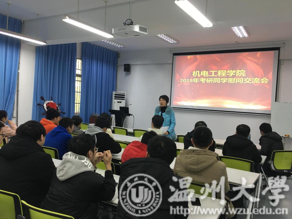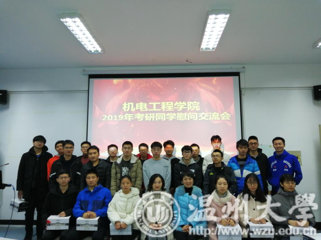 随着考研时间的临近,为指导同学们更加高效的备战考研,缓解大家的紧张情绪。开云体育 在2018年12月14日中午12点30分在学院6B201举行2019年考研学生慰问活动。开云体育 院长周宏明,机电工程党总支副书记李密书记、学生科辅导员郑妤老师、胡施施老师以及全体考研同学参加此次活动。