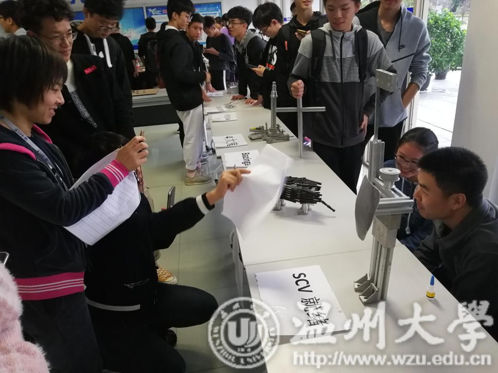 以激发学生创造力与培养学生动手能力为目的的科技之光活动月之子活动机械零件组合大赛于11月19日15:30于机电楼一楼大厅成功举行。本次活动由机电学院科创部主办,以”守护”为主题,机械工程专业全体同学参赛,机电学院教师张吴湖,胡海萍担任本次大赛评委,通过打分制评出优胜者。