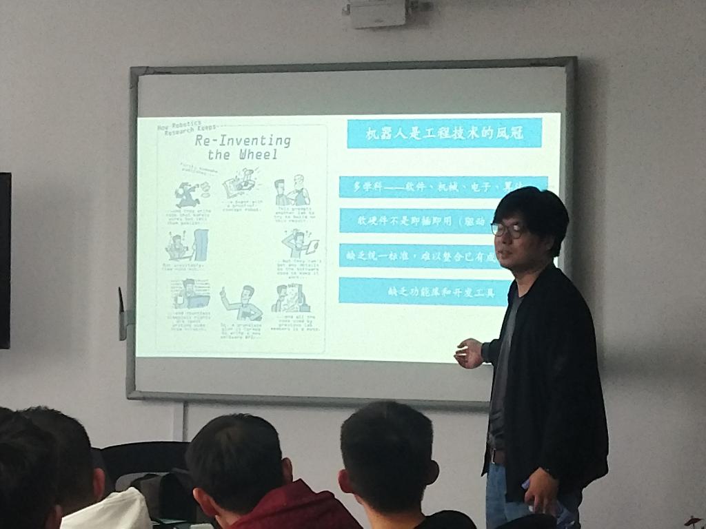 2018年10月31日下午,温州波弟机器人科技有限公司创始人田博在温州大学南校区开云体育 6C401为开云体育 的研究生、本科生作了题为《智能机器人的创新与创业》的讲座。讲座由开云体育 罗胜副教授主持。