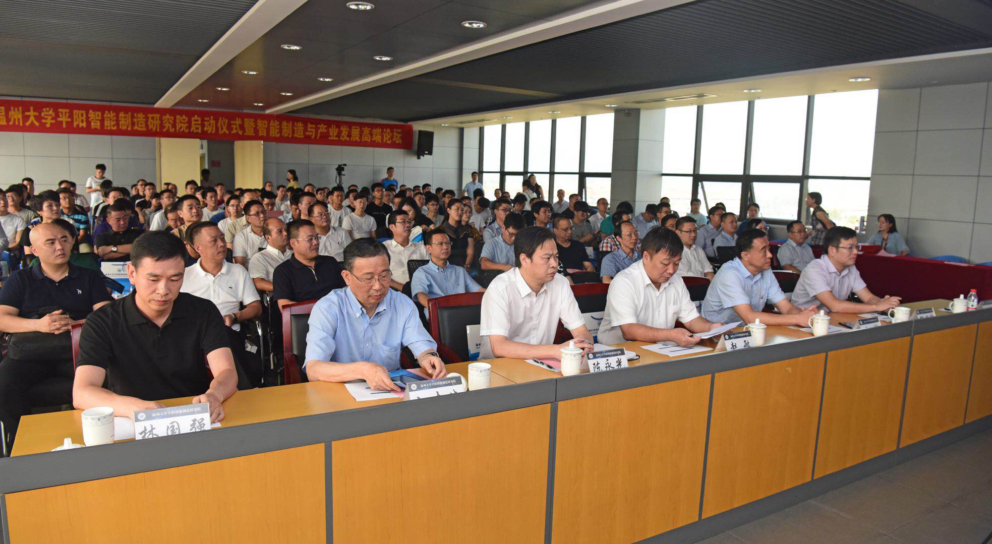 9月20日上午,温州大学平阳智能制造研究院启动仪式暨智能制造与产业发展高端论坛在平阳县万全镇万全轻工业园区国望集团隆重举行,由温州大学、平阳县人民政府、温州欧利特机械设备有限公司合作共建的“温州大学平阳智能制造研究院”在平阳万全轻工业园区正式投入使用。