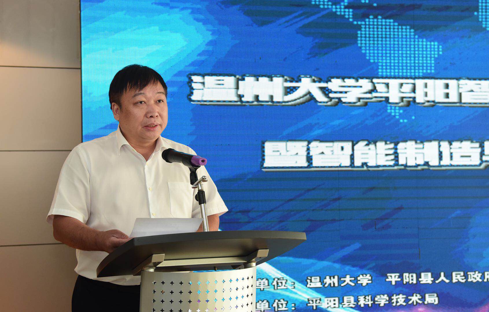 邵潘锋代表温州市科技局表示祝贺。他表示,温州大学平阳智能制造研究院的建设,是地方联合本土高校开展政产学研合作的有效途径,对于推动企业两化深度融合、推动产业技术创新具有重要作用。研究院的建设为平阳科技创新团队打造、科技成果转化提供了平台支撑。他希望,通过政校企三方的共同努力,政校合作、校企合作项目能够得到顺利实施,科技创新成果转化进一步加快。