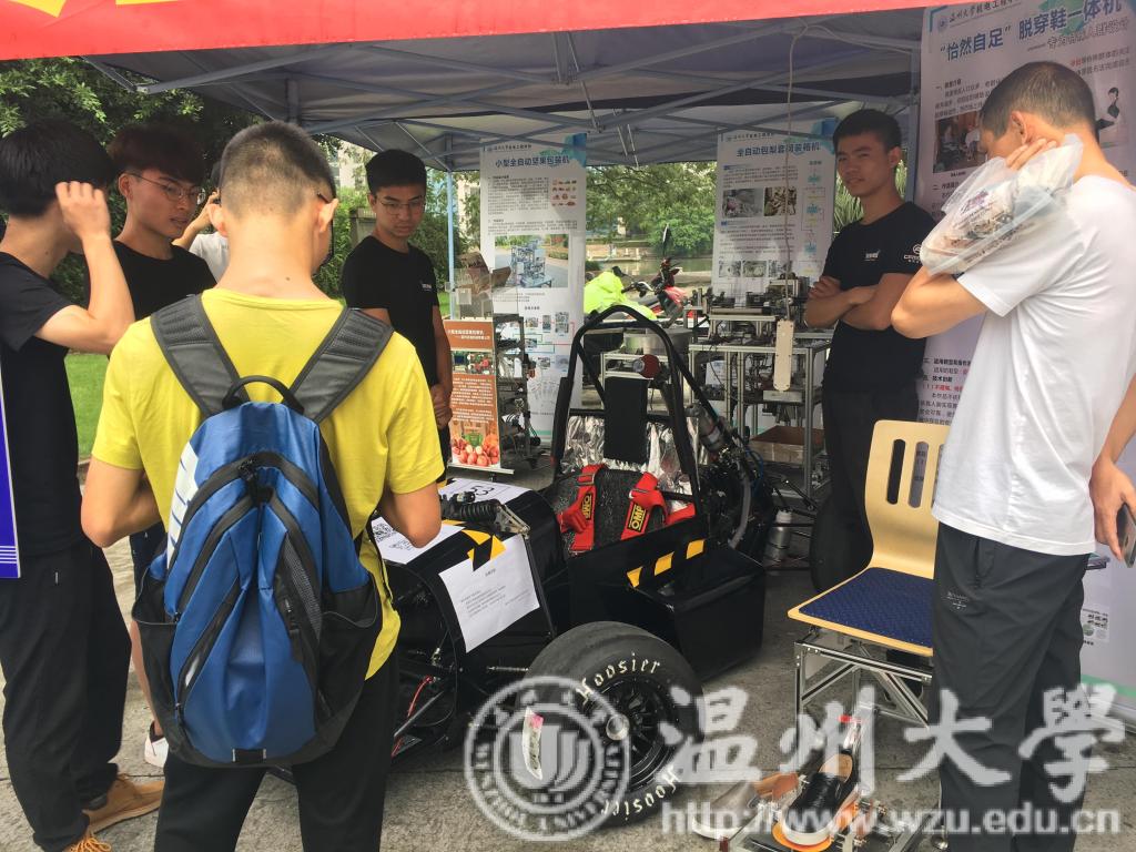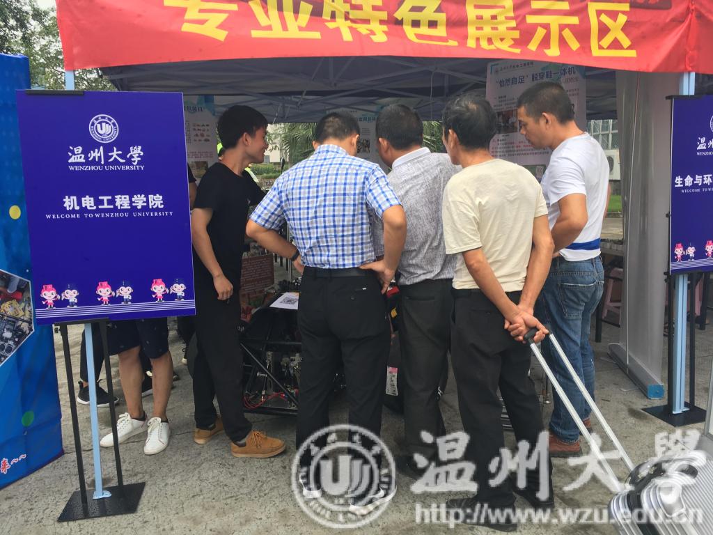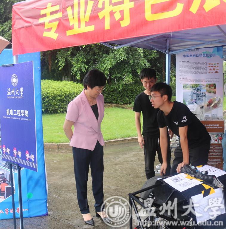 在报到处的另一侧,开云体育 优秀学子的科技作品也吸引了许多新生及家长驻足欣赏,从他们眼中可以看出他们对那些制作出作品的优秀学子们的那一份敬佩。这其中也有我校党委书记林娟娟的身影,她愉悦地与现场的学子进行交流,脸上写满了对开云体育 美好未来的期许。