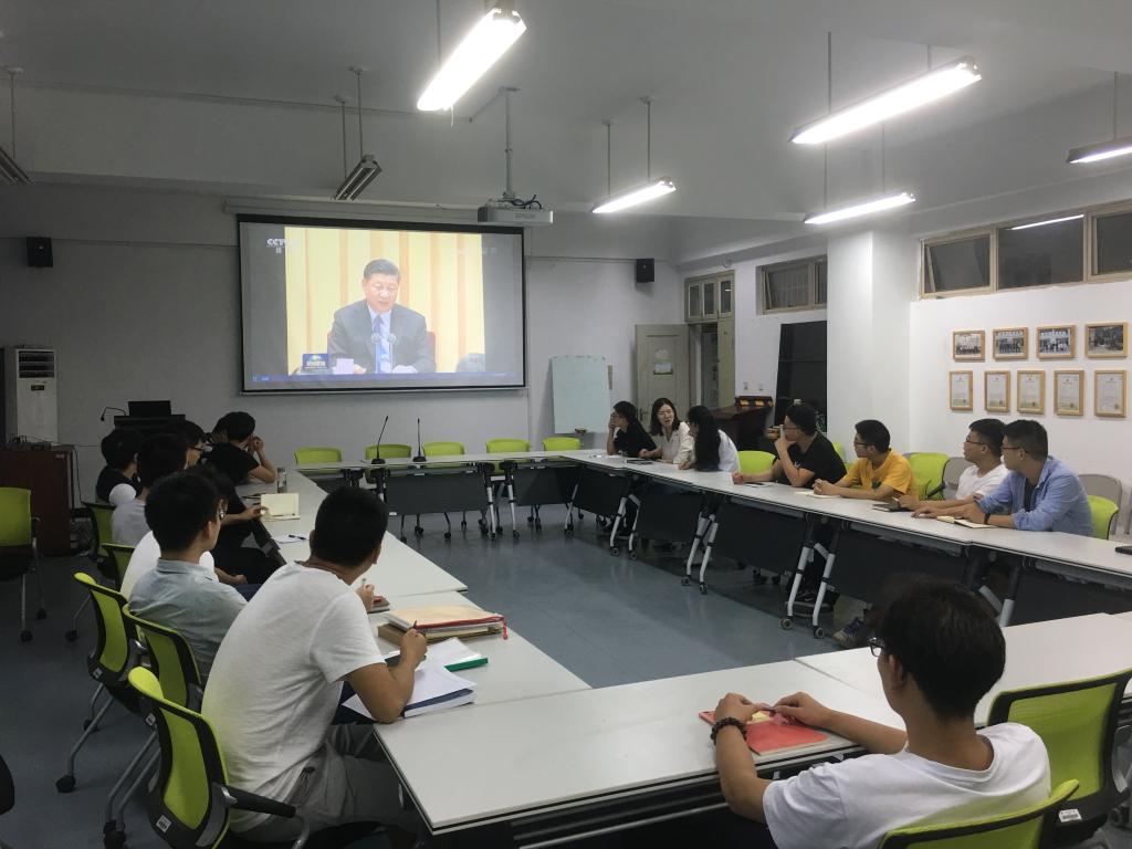 研究生党支部的党员们在6B201会议室集中收看了习近平总书记在全国教育大会上的讲话。