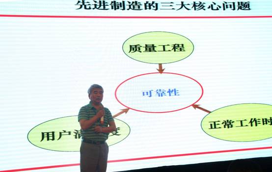 温州大学副校长、温州大学激光与光电智能制造研究院理事长薛伟教授致辞,来自国内外可靠性领域的13位顶级专家做了精彩报告,中国工程院院士、浙江大学教授谭建荣分别从智能制造的意义、三大核心问题、十大关键技术、预测模型及存在的挑战做了名为《智能制造与质量控制:关键技术与发展趋势》的报告,谭院士的讲解深入浅出,引发与会者的共鸣,到场嘉宾纷纷拿出手机对谭院士的ppt进行拍摄。