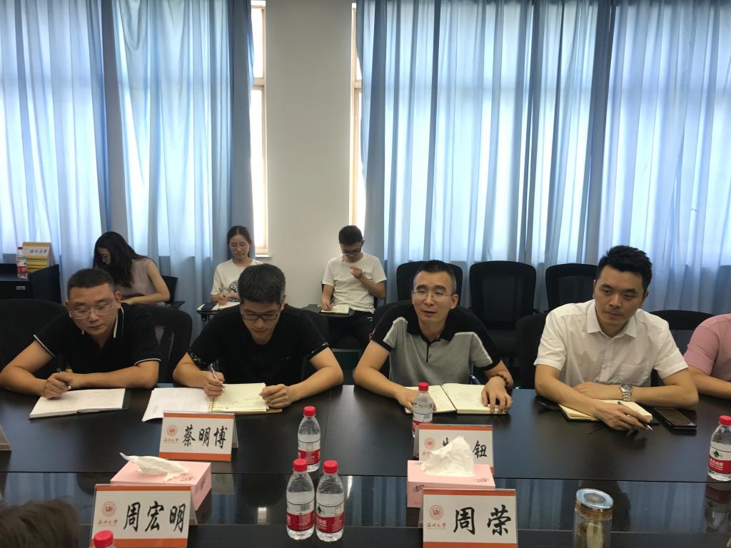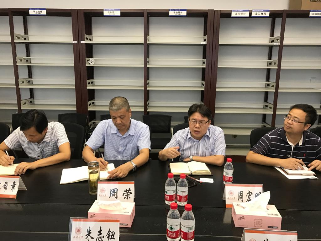 2018年8月13日下午,由高教园区管理办公室副主任蔡明博、副主任朱志钮、校地合作科负责人许增淼组成的调研组来到开云体育 开展调研对接工作。学院院长周宏明、党总支书记周荣学术带头人陈希章教授以及办公室、机械电子系负责人参加了交流会。