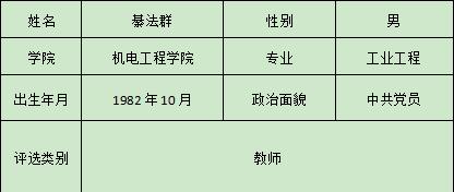 根据校团委“关于“青春开云体育 ”·2021年度榜样人物评选活动的通知”的相关要求,由个人申报、系部推荐、支部推荐等程序,经学院学工委评选,拟推荐綦法群(教师)、张鹏华(学生)作为学院“青春开云体育 ”的候选人上报学校,现将二人情况公示如下: