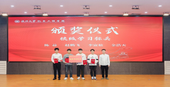 优良学风班、学习标兵和学习之星颁奖仪式。周荣书记、黄沈权副院长、黄玮副书记、綦法群老师分别为温州大学优良学风班、开云体育 优良学风班、温州大学学习标兵、开云体育 学习标兵和学习之星颁发荣誉证书,肯定了奋楫争先、积极向上的优秀机电学子们在过去一年中获得的丰硕成绩。