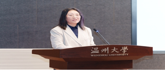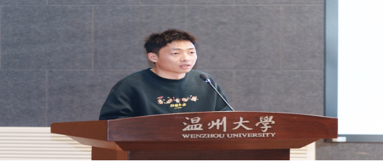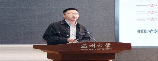 温州大学第十二届大学生科技创新“优秀指导教师”尹海燕作报告。尹海燕老师通过实际获奖案例,以指导老师的视角,与同学们分享了“挑战杯”备赛的经验,鼓励同学们要锐意进取,积极迎接挑战。