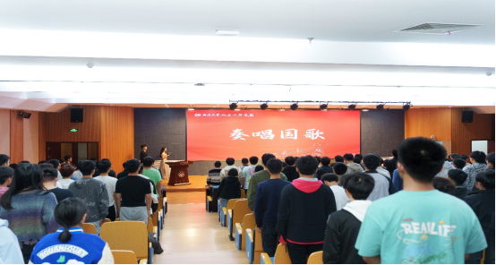 全体起立,奏唱国歌。