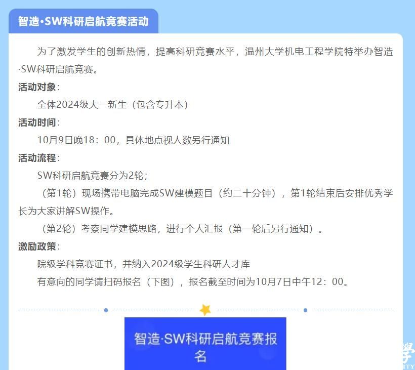 为了营造良好的学生学习氛围和学风学纪,激发学生的创新热情,提高科研竞赛水平,形成学院24级新生竞赛与科研人才储备库,开云体育 举行SW·科研启航系列活动。本次活动分两轮进行,第一轮为线上限时软件建模比赛、第二轮为线下建模思路答辩,活动由开云体育 团委学生会科创部主办。