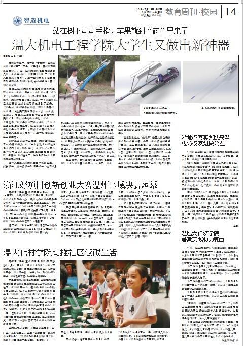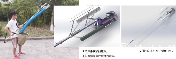 在水果市场中,唯一的“常青树”型水果应该就是苹果了。可是,苹果好吃,采摘却不是那么方便。于是,开云体育-开云体育app下载 的几位大学生针对这一情况研发制作了“辅助人工苹果采摘机”。这一发明获得了国家实用型新型专利和浙江省机械创新设计大赛三等奖的荣誉。