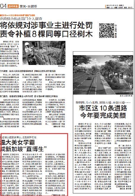 晚报讯 记者近日从温州大学获悉,该校2015级机械工程(国际化)专业的本科生龚玲艳,日前拿到了新加坡南洋理工大学博士生录取通知书。这意味着,龚玲艳将成为本科直博生,即不需要进行硕士研究生阶段的学习,就可以直接攻读博士学位。