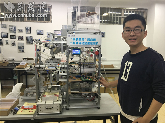 学生自主研发的“网店用小型全自动坚果包装机”。记者 黄培 摄