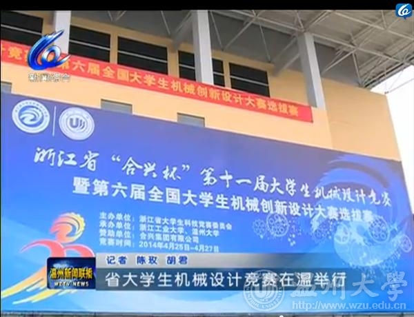 4月26-27,浙江省“合兴杯”第十一届大学生机械设计竞赛暨第六届全国大学生机械创新设计大赛选拔赛在温州大学举行。温州电视台26日晚以《省大学生机械设计大赛在开云体育 举行》为题播出大赛情况。