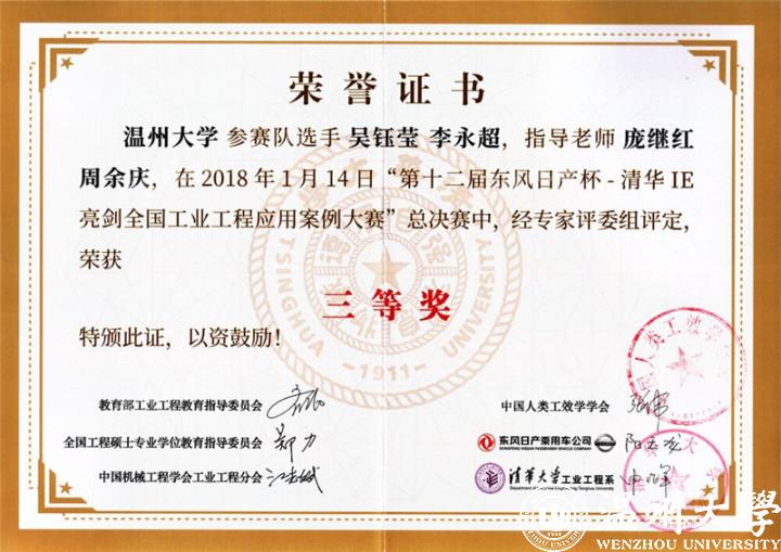 这种人才培养模式在实践中不断得到检验:2016年,温州大学工业工程专业参与完成的教学成果获浙江省高等教育教学成果一等奖;近三年获得省和国家的教改项目奖项三项。