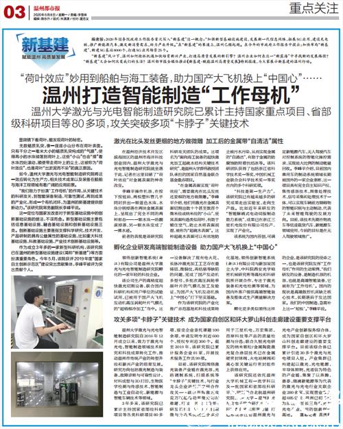 如今,温州大学激光与光电智能制造研究院将这一效应转化为生产力,相关技术成果以及装备在船舶与海洋工程领域有着广阔的应用前景。