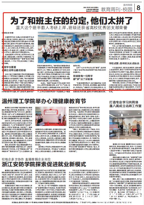 ,就有这样一个拼搏班,曾获得过浙江省高校优秀团支部、温州大学五四红旗团支部、温州大学优良学风班等荣誉。而最近,考研成绩发布,该班再次传来好消息——全班57人,30人考研上岸,升学率52.63%。其中,考取浙江大学、南京大学、大连理工大学等985、211大学18人,国内名校升学率达到31%。