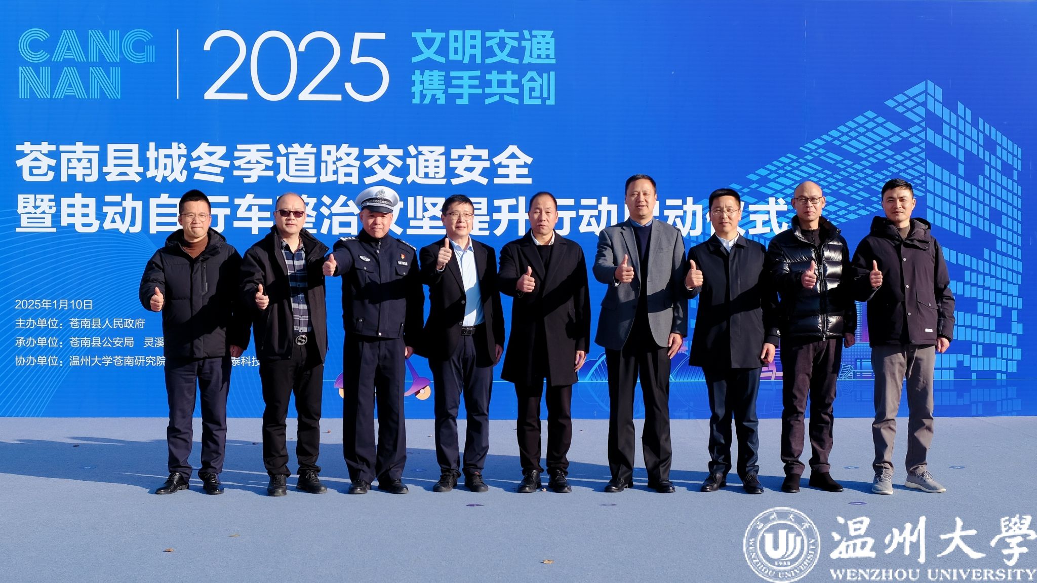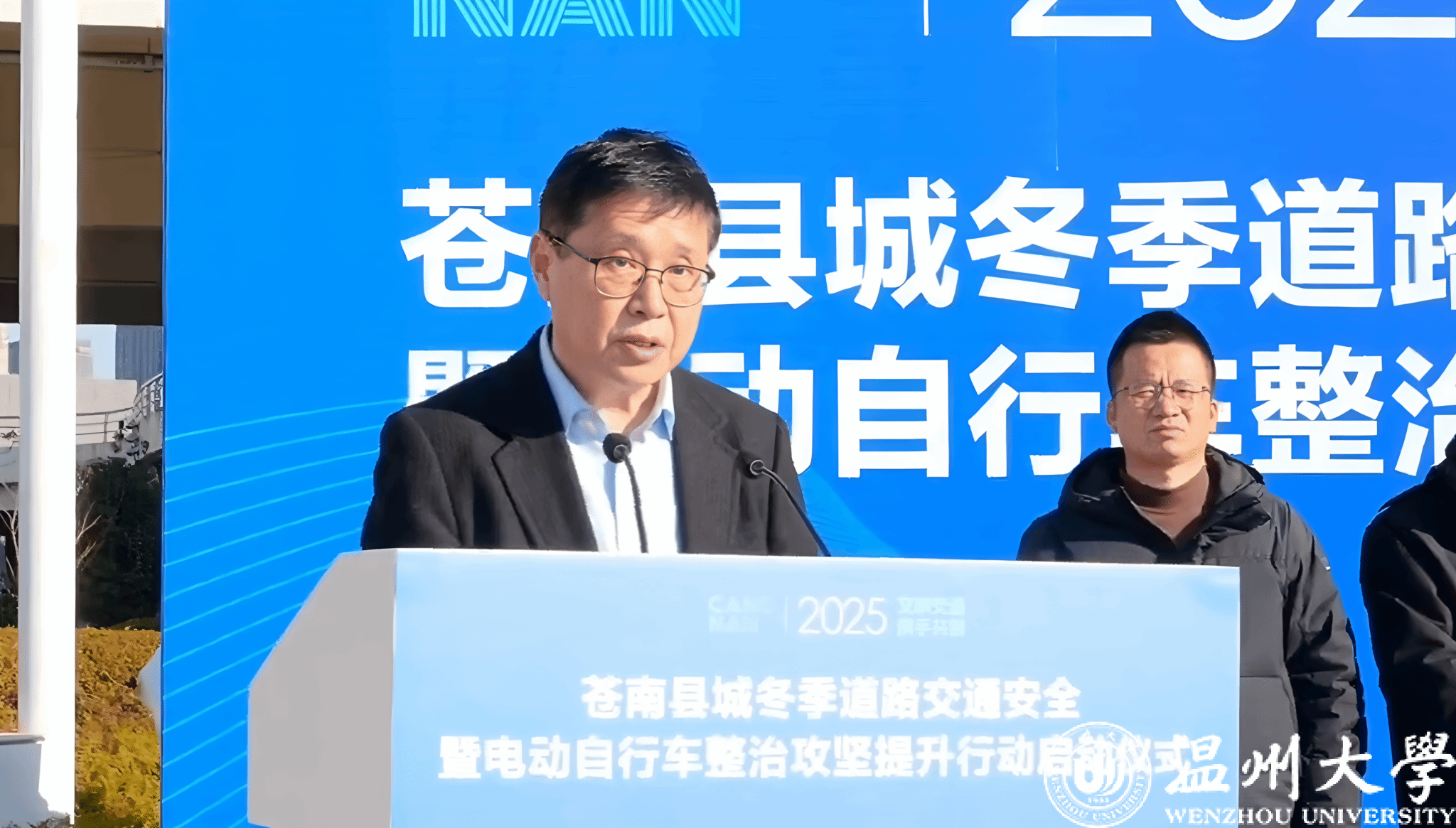 近日,2025“文明交通 携手共创”苍南县城冬季道路交通安全暨电动自行车整治攻坚提升活动启动仪式在县体育中心广场举行。苍南县委常委、副县长叶小剑,副县长、公安局局长葛震海等领导出席仪式,温州大学苍南研究院院长张淼应邀出席并作“科技赋能交通执法”主旨发言。