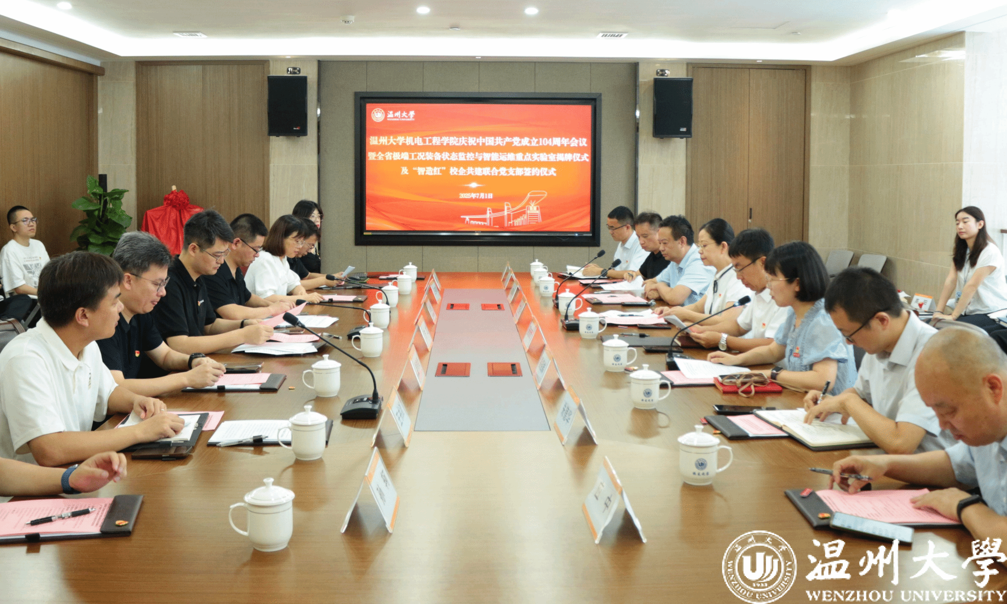 7月1日,开云体育-开云体育app下载 庆祝中国共产党成立104周年会议暨全省极端工况装备状态监控与智能运维重点实验室揭牌仪式及"智造红"校企共建联合党支部签约仪式在校友之家二楼会议室顺利举行。浙江金风科技有限公司、瑞立集团负责人、温州大学副校长刘玉侠、组织部部长夏春雨,以及职能部门、学院负责人、全省极端工况装备状态监控与智能运维重点实验室骨干人员和教师党员代表等参加会议。