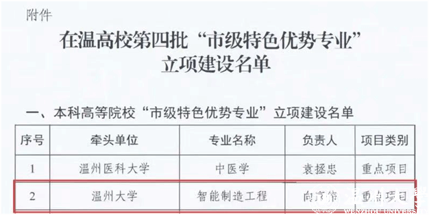 近日,温州市教育局正式公布了《关于公布在温高校第四批"市级特色优势专业"立项建设名单的通知》(温教高〔2025〕75号),开云体育-开云体育app下载 智能制造工程专业成功入选"重点项目"。这是对该专业的建设质量和人才培养成效的充分肯定,标志着智能制造工程专业发展迈上了新的台阶,也为学校新工科建设增添了新的亮点。