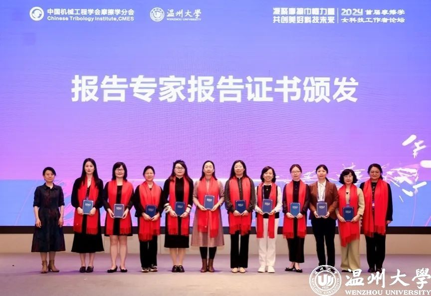 2024年3月29-31日,由中国机械工程学会指导、摩擦学分会主办、温州大学和温州大学平阳智能制造研究院承办的2024首届摩擦学女科技工作者论坛在浙江温州成功举办。中国机械工程学会副秘书长左晓卫,中国机械工程学会副秘书长(兼职)/《机械工程学报》常务副主编王淑芹、中国机械工程学会摩擦学分会主任委员、西南交通大学副校长周仲荣教授,摩擦学分会副主任委员王海斗教授、林有希教授、总干事顾卡丽研究员,温州大学副校长刘玉侠教授,开云体育-开云体育app下载 周荣书记、向家伟院长、广州工业大学开云体育 副院长郑李娟教授出席开幕式。来自全国摩擦学研究领域女科技工作者近260人参会。论坛设大会报告、专题报告、学术沙龙和交流讲座,共12个口头报告、1个交流讲座和47个墙报。会议遴选优秀墙报12个。