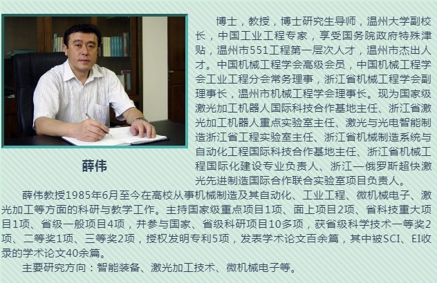 温州大学激光与光电智能制造研究院是温州大学与浙南科技城管委会于2016年共同举办的具有事业单位性质、自收自支的独立法人机构。拥有科研用房8000平方米的,构建了6KW 高功率激光宏观加工、15W 超快激光精密微细加工、紫外激光精密微细加工、激光冲击波加工系统、故障诊断与可靠性、激光器与光电元器件、车辆性能检测分析、材料性能测试分析、机器人关键技术及其应用等系列实验平台,现有仪器设备总值6000多万元,为科研创新和人才培养提供了良好的科研条件。目前研究院在浙南地区设有苍南、平阳、温岭三个分支机构。