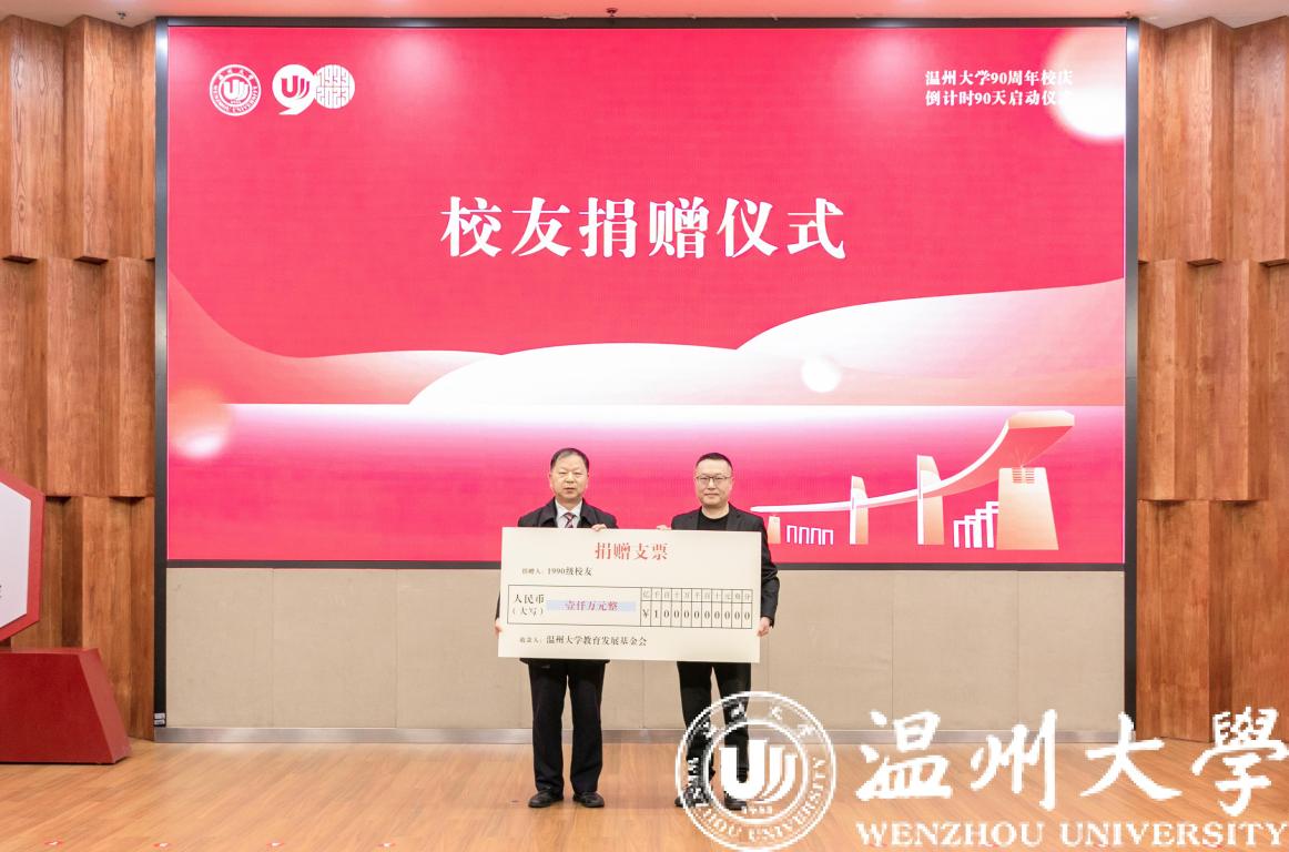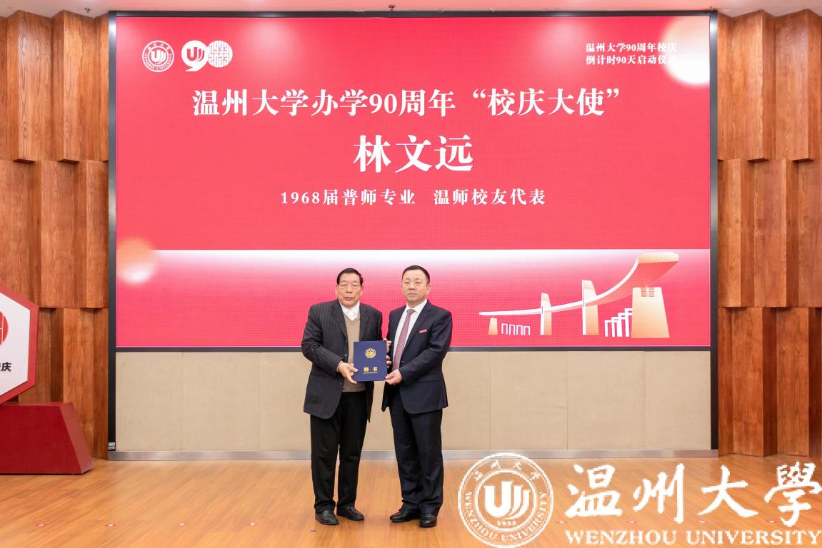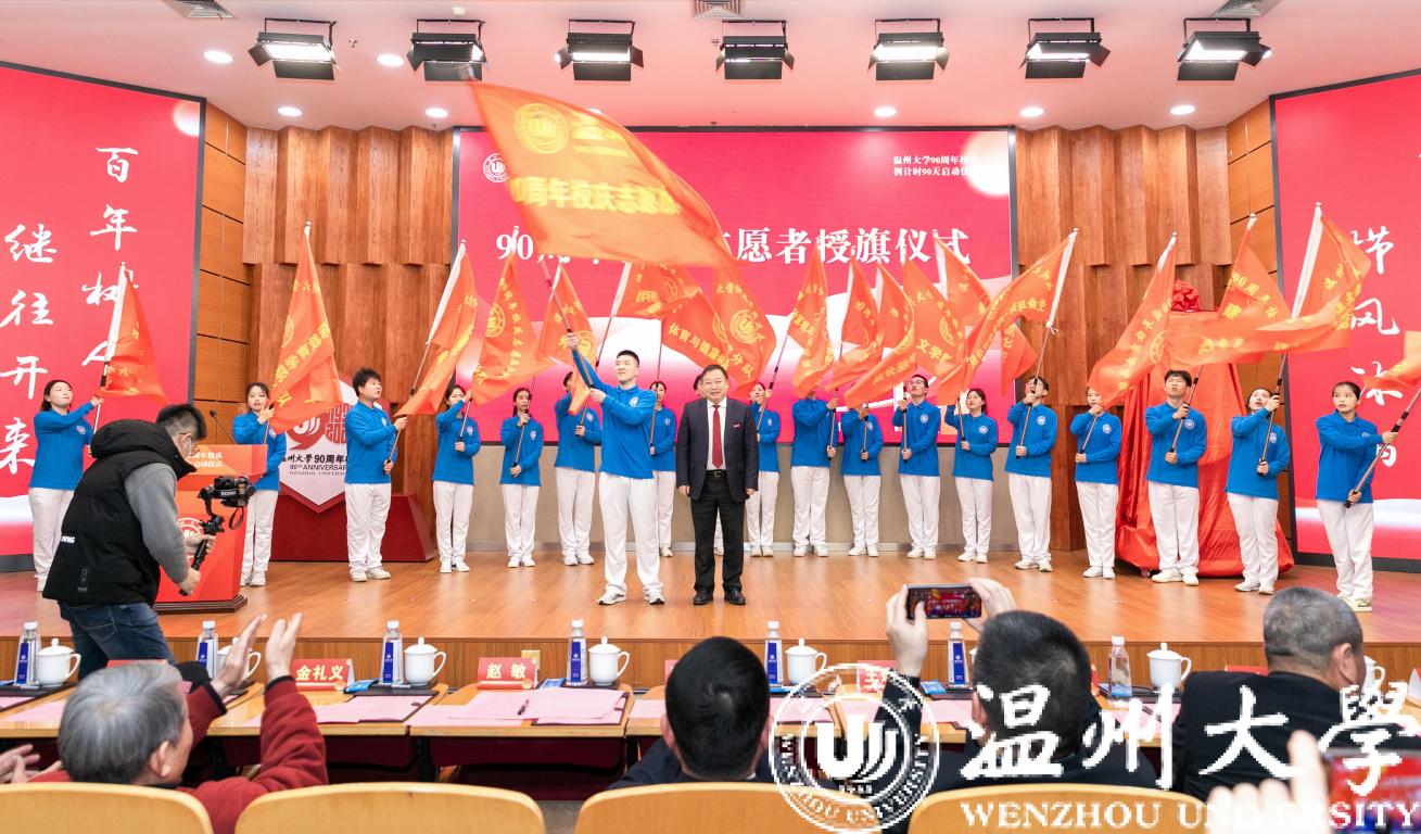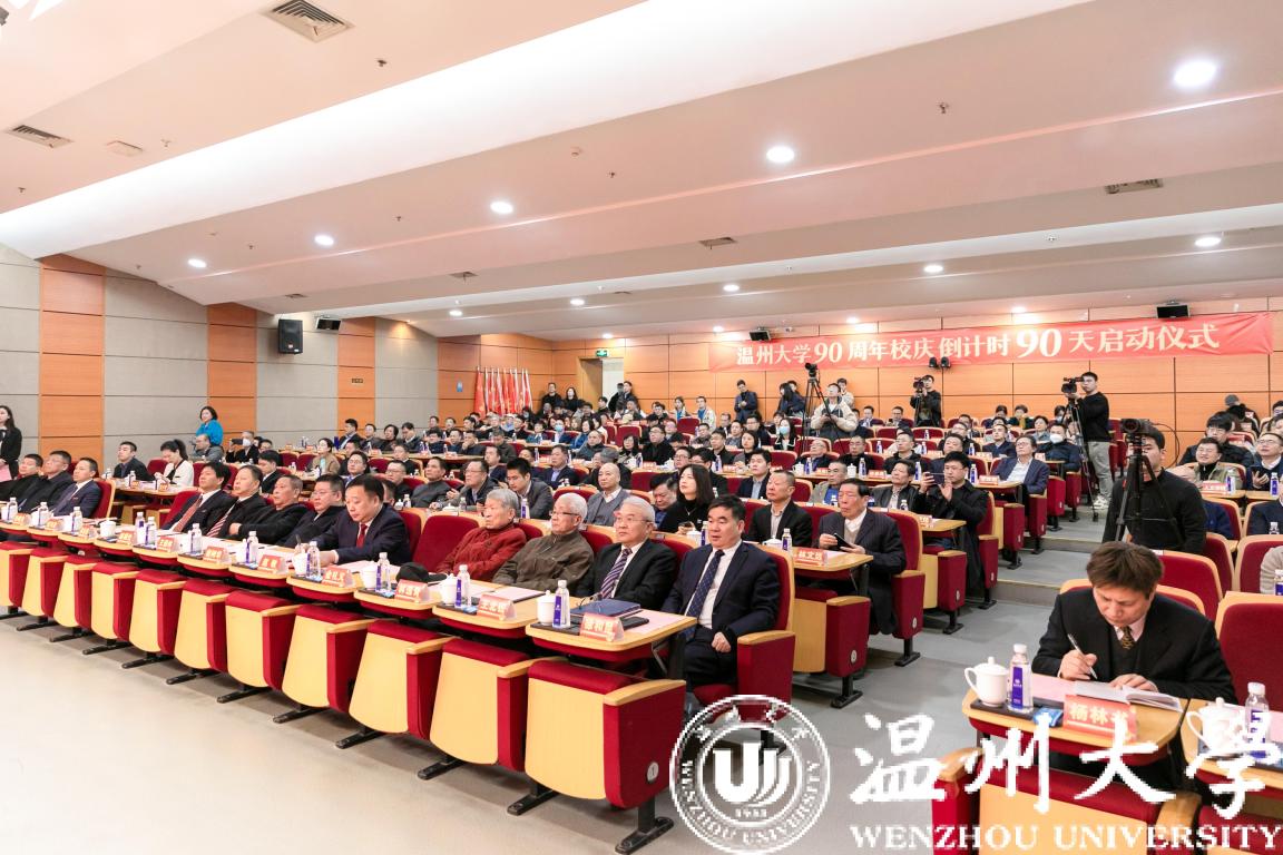 校党委书记谢树华,校长赵敏,老同志代表、校友代表、教师代表、学生代表共同启动温州大学90周年校庆倒计时90天。