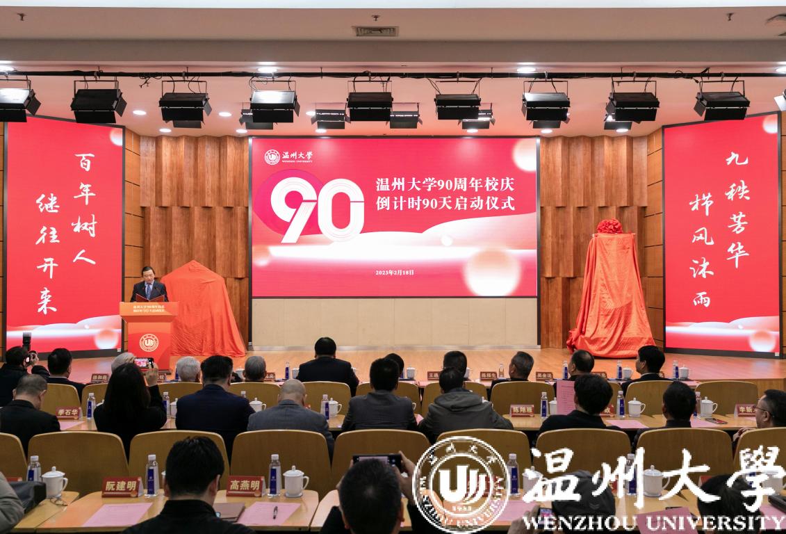 九秩芳华,栉风沐雨;百年树人,继往开来。2月18日上午,温州大学90周年校庆倒计时90天启动仪式在南校区岩松堂雁山厅隆重举行。全体校领导、校友代表、校庆志愿者代表、师生代表参加活动。副校长蔡曙光主持。