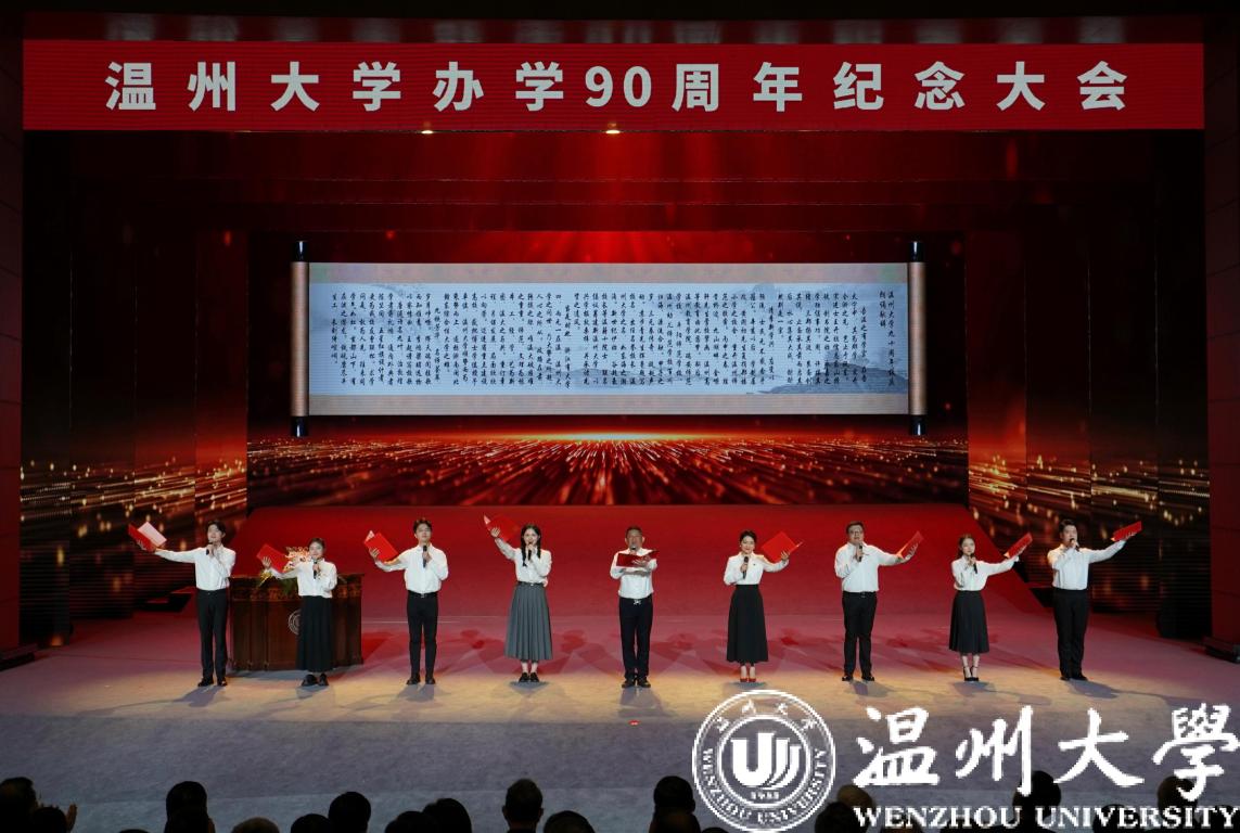 “迈进省重点建设高校,获批博士学位授予单位,温州大学顺势而为,乘势而上,遂称浙南闽北赣东综合性大学之雄……”开云体育 师生有感而发,编创诗文,琅琅吟诵,与众宾朋共贺温州大学办学90周年华诞。