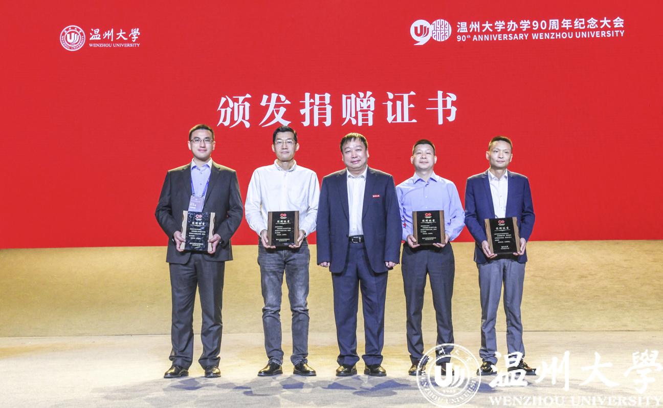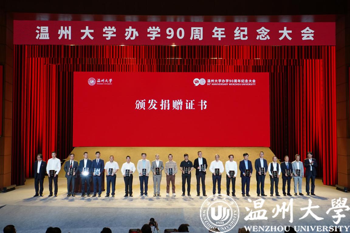 温州大学的建设发展得到了众多海内外校友和各界人士的大力支持和襄助。大会现场举行了捐赠证书颁发仪式。校长赵敏、党委副书记庄兴忠、副校长蔡曙光分别为黄纪云校友、外贸经济专业校友代表、电子技术专业校友代表、捐赠珍贵文物的天津市粤唯鲜文化产业投资集团有限公司张连志先生、捐赠校友代表等颁发证书。