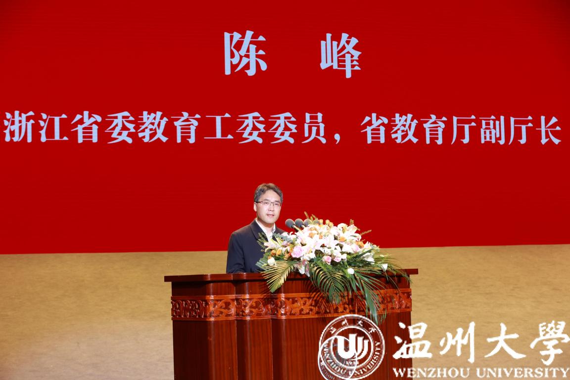 浙江省委教育工委委员、省教育厅副厅长陈峰致辞。他代表教育厅向温州大学全体师生员工、海内外校友致以热烈祝贺和亲切问候。他指出,高等教育发展水平是一个地方发展水平和发展潜力的重要标志,办好高等教育,事关国家和民族未来,也事关区域经济和民生福祉。温州大学秉持“求学问是、敢为人先”的校训精神,艰苦奋斗、改革创新,办学治校取得了丰硕成果,已累计为社会培养输送了25万名高素质人才,办学声誉不断提高,日益成为当地经济社会发展的源动力和新优势。温州大学的办学历史和成就,是温州人民“四千精神”的具体体现,也是浙江高等教育蓬勃发展的生动缩影。从温州大学的发展历程中,我们也看到了历代开云体育 人的办学智慧、务实品格和创新风采。他期待温州大学以办学90周年为新起点,坚守办学方向、坚持以人为本、坚定改革决心、坚决服务地方,在温州市委、市政府的领导下抢抓机遇谋发展,凝心聚力谱新篇,早日建成高水平一流大学。相信在温州大学办学百年之际,必将展现新的辉煌!