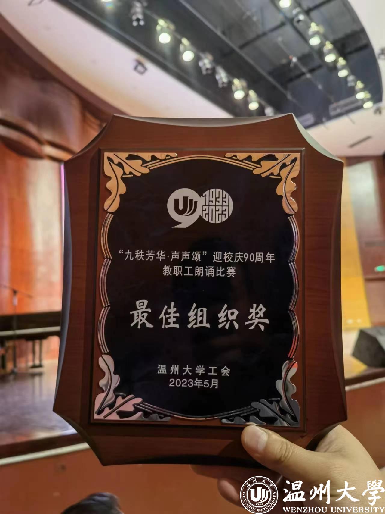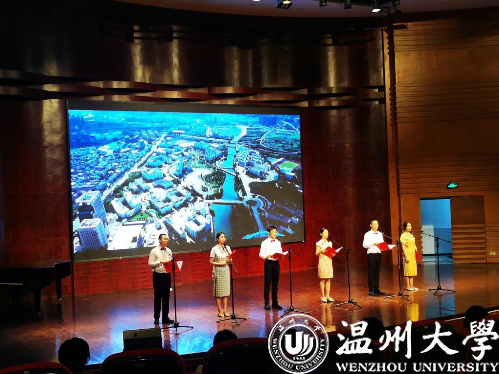2023年5月10日下午两点,由温州大学工会主办教师教育学院承办的“90周年校庆”诗歌朗诵教职工朗诵比赛在南校音乐厅拉开帷幕。初夏的校园仍然生机盎然,校园里四处迷漫着书香,在如此美丽的季节里,学校教职工上演了一场别开生面的比赛。