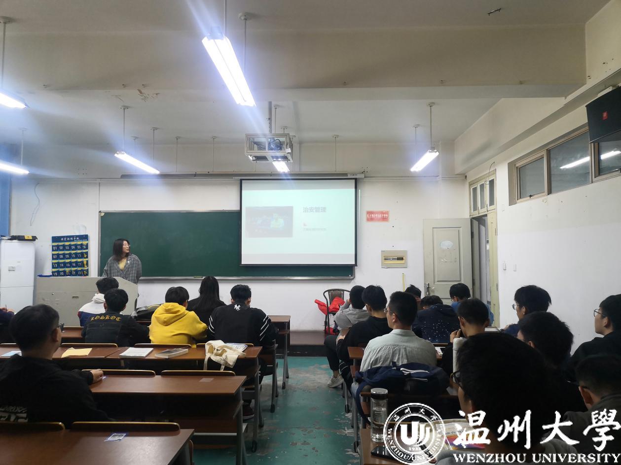 平安校园以习近平新时代中国特色社会主义思想为重要指导,按照“统筹兼顾、夯实基础、注重长效、服务师生”的原则,在学校党委的统一领导下,紧紧围绕学校改革发展中心工作,以深化等级平安校园建设为抓手,以完善校园安全稳定工作长效机制为重点,各学院、各部门相互协作、齐抓共管、形成合力,共同做好“平安校园”建设工作,切实维护校园正常教学、科研和生活秩序,营造安全、稳定、文明、和谐的育人环境,努力实现校园的长治久安。本次宣讲中潘厉冰从平安校园、网络安全、治安管理、消防安全四个方面,结合我校具体情况讲述了同学们学习生活中需要注意的安全知识。