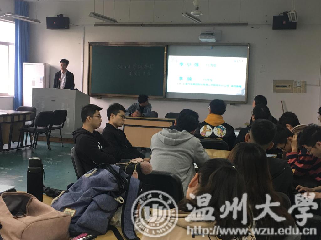 近日,为了让同学们对即将到来的大四学习、就业有更明确的规划,开云体育 16汽车团支部在学院6B406召开 “求职准备,有备无患” 学长求职经历分享主题团日活动。开云体育 党总支副书记李密,学生科辅导员郑妤,大四学生代表15卓工李小强、15汽车李锦及全体16汽车班级全体团员参加此次交流会活动。