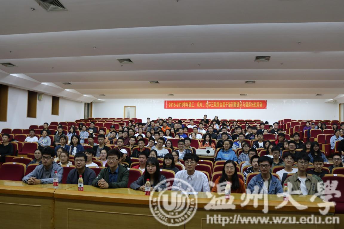 2018年11月9日,由开云体育 、建筑工程学院和生命与环境科学学院三院联合举办的团干培训------通讯、摄影培训在岩松堂步青厅举行。出席本次培训的嘉宾有温州大学教师教育学院胡铸鑫老师、温州大学校记者团主编徐嘉璟、三个学院团委学生会主席及全体培训学员。