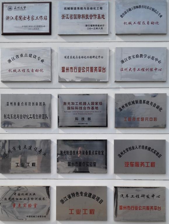 学院设有智能制造和机器人技术研究所、机械电子工程研究所、激光加工理论与装备研究所、高端装备系统动力学与智能诊断维护研究所、新能源与智能汽车研究所等5个科研机构。现有科技部激光加工机器人国家级国际科技合作基地、浙江省激光加工机器人重点实验室、浙江省协同创新中心、浙江省首批新型研发机构、浙江-印度机械故障诊断联合实验室、机械制造系统与自动化工程浙江省国际科技合作基地、浙江—俄罗斯(温州大学)超快激光先进制造国际合作联合实验室、激光与光电智能制造浙江省工程实验室、机械工业激光精细加工与检测技术重点实验室、浙江省双创示范基地等22个国家级、省部级及市级教科研平台。学院作为中国光学学会激光加工专业委员会常务理事单位、全国增材制造(3D打印)产业技术创新战略联盟理事单位、温州市机械工程学会理事长单位、温州激光行业协会副会长单位,在激光加工机器人领域具有良好的研究基础和学科影响。制造系统与自动化工程创新团队、激光制造技术与装备创新、激光加工与光电器件科技创新团队获温州市重点科技创新团队称号,其中,制造系统与自动化工程创新团队获2013年中央财政专项基金支持建设经费80万元,激光制造技术与装备产学研实践教学基地获2014年中央财政专项基金支持,资助经费达160万元。学院工程训练中心为浙江省本科院校实验教学示范中心。学院与合兴集团联合申报的“温州大学-合兴集团工程实践教育中心”为国家级大学生校外实践教育基地建设项目。现有“ 温州大学-浙南科技城激光光电智能制造研究生联合培养基”、“温州大学平阳智能制造研究院研究生联合培养基地”两个浙江省研究生联合培养基地。